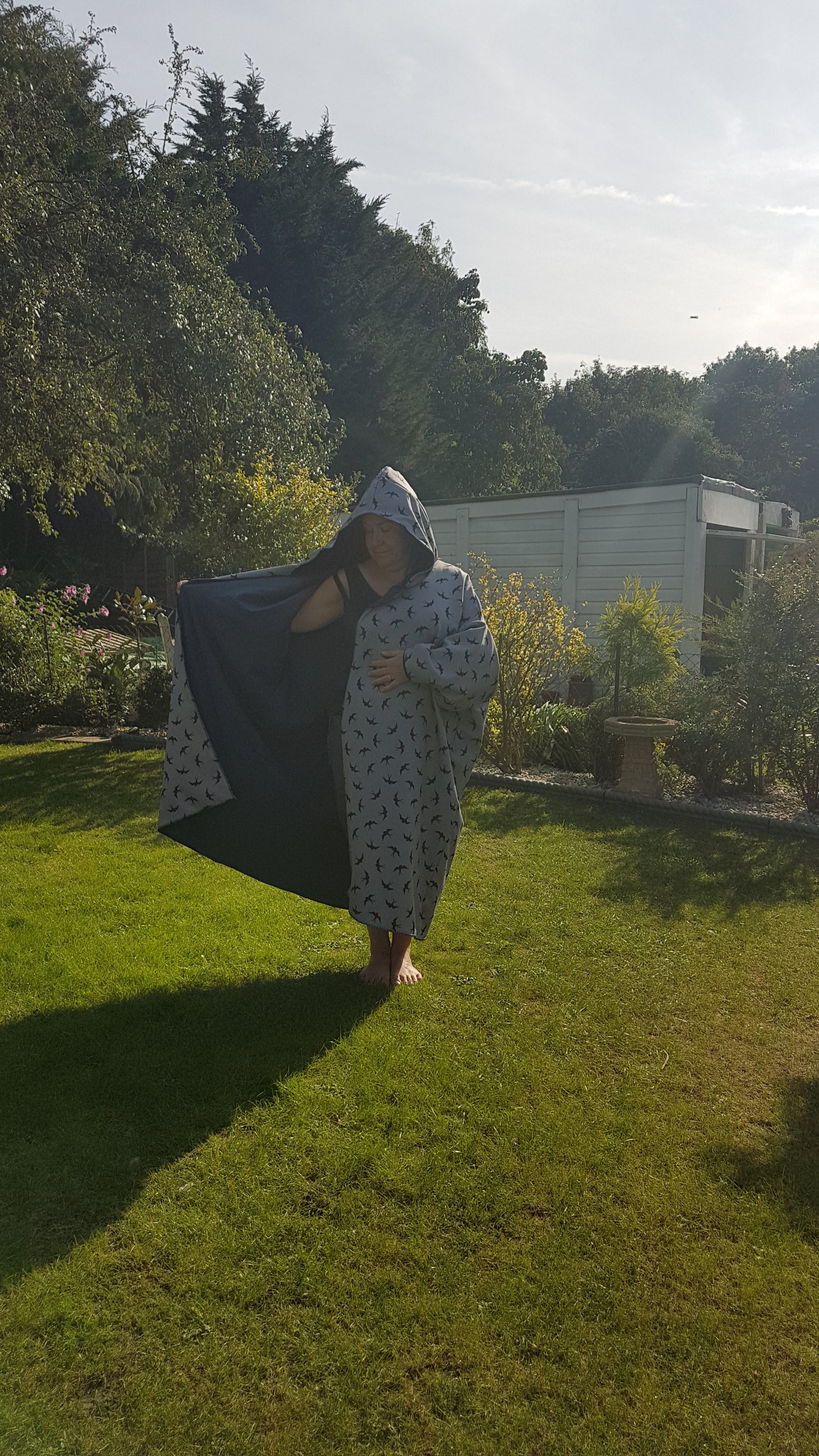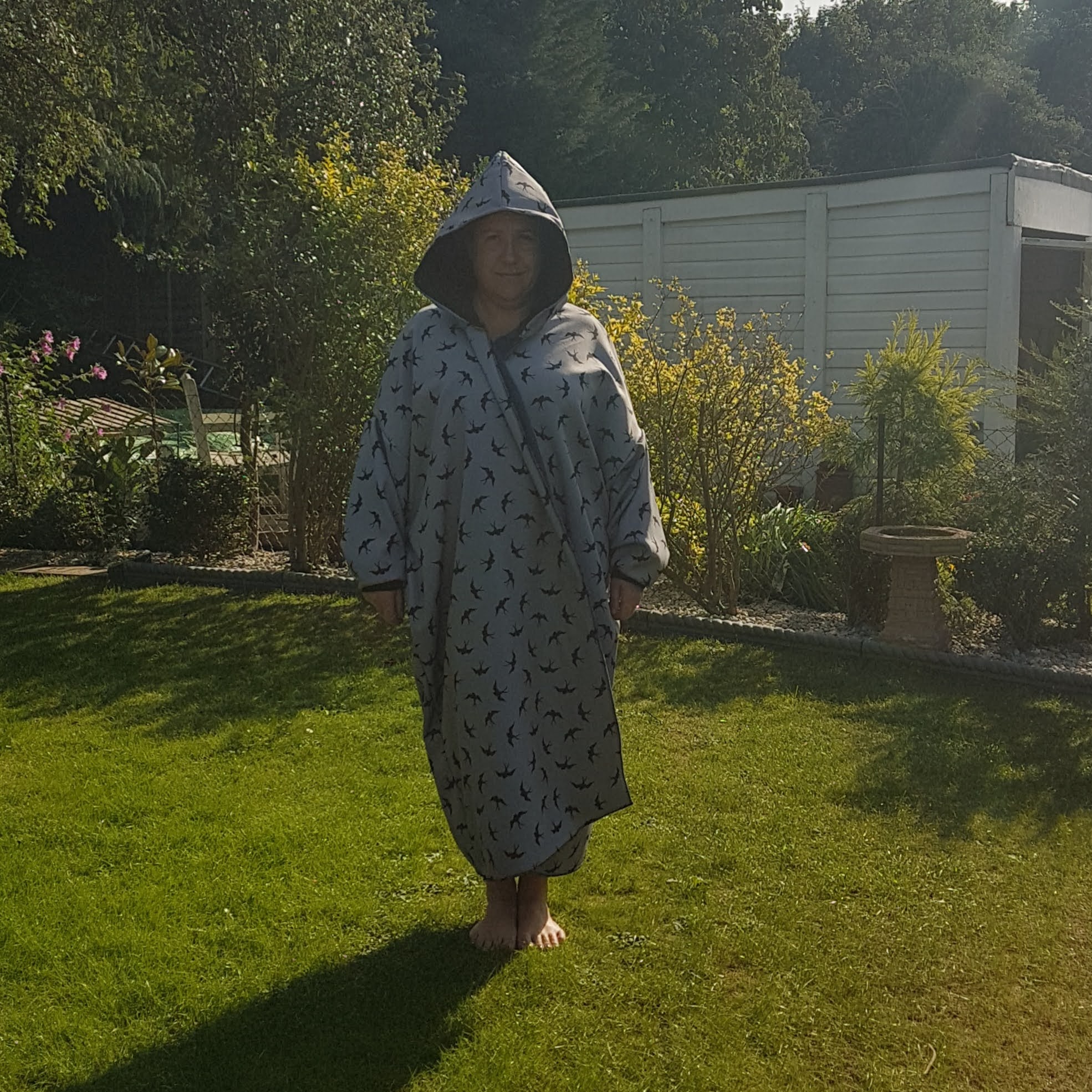 The temperature in the lake this morning was 13 degrees, the coldest we have swum and we very sensibly got out after half a lap (about 400m). I tested the DIY dry robe and I was positively toasty! However, this will be me for the rest of the day: