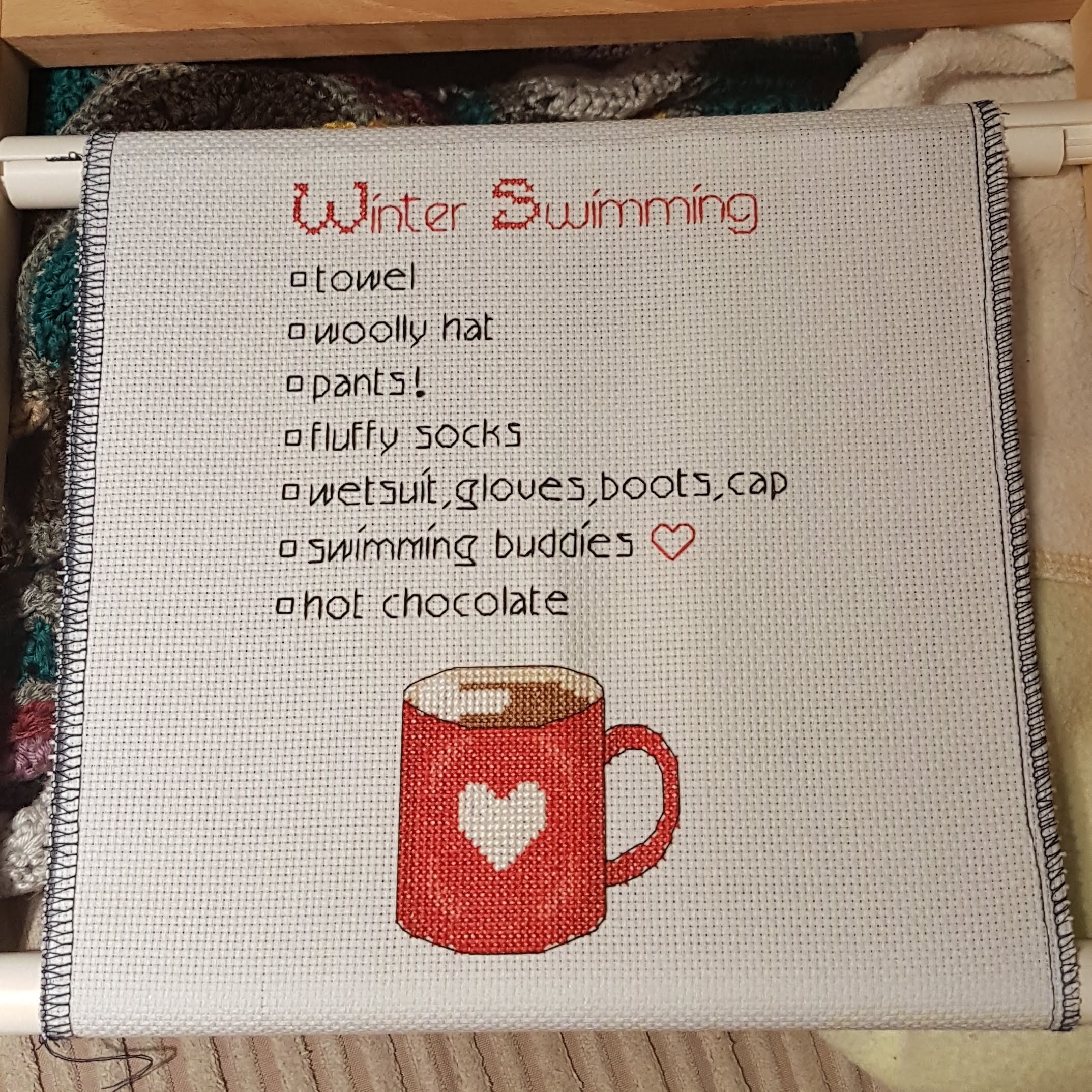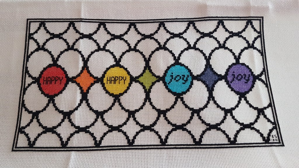 What happens to rolls of double-sided sticky tape? Where do they go? I started a new one a couple of weeks ago when I was making my colleague’s birthday card and today I couldn’t find it anywhere. I managed to find a squashed roll in the shed, luckily, so my plan to frame various cross stitches wasn’t thwarted. I also found a stash of coloured aida fabric which was in the wrong box – that’s going to come in useful.