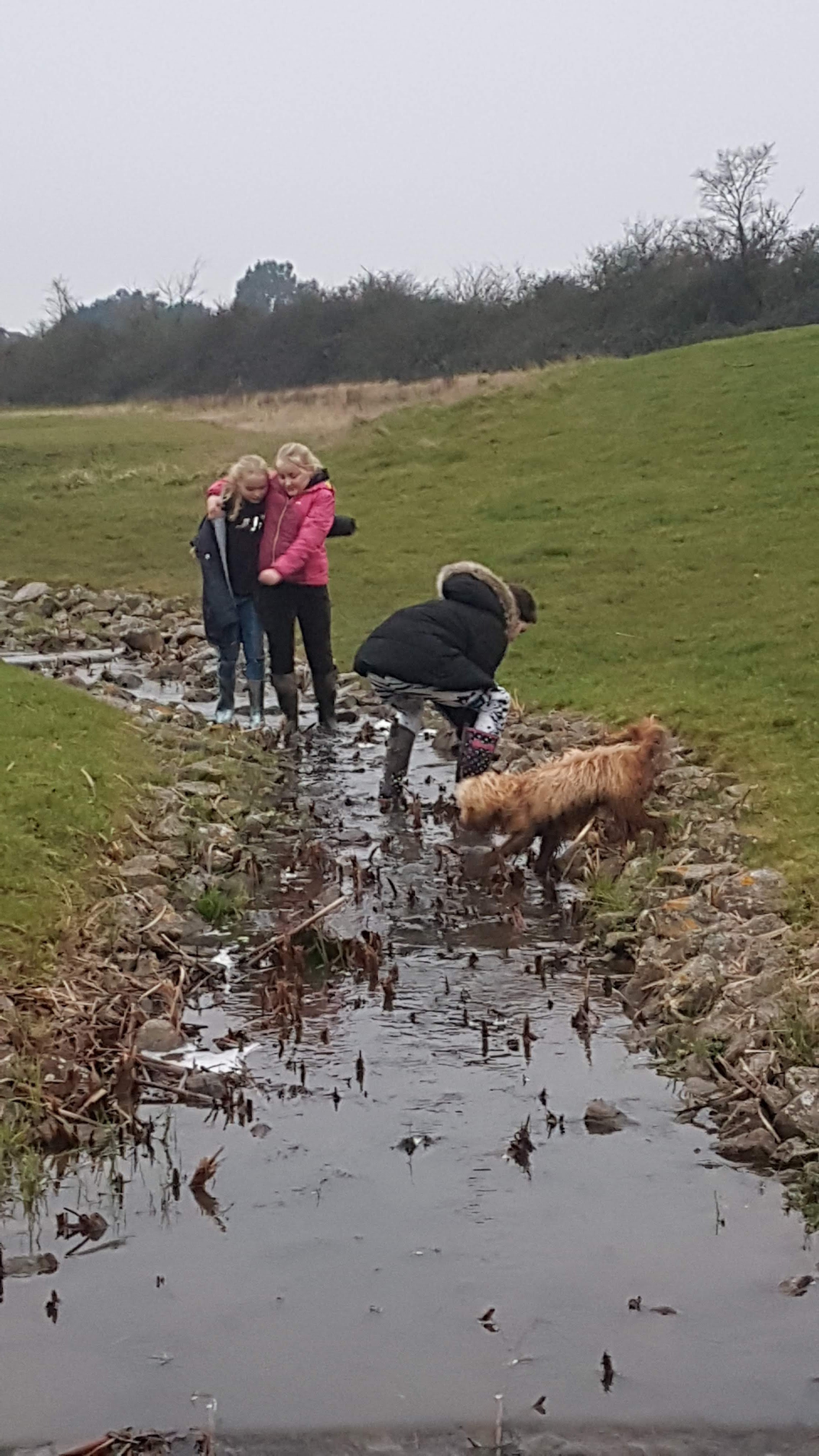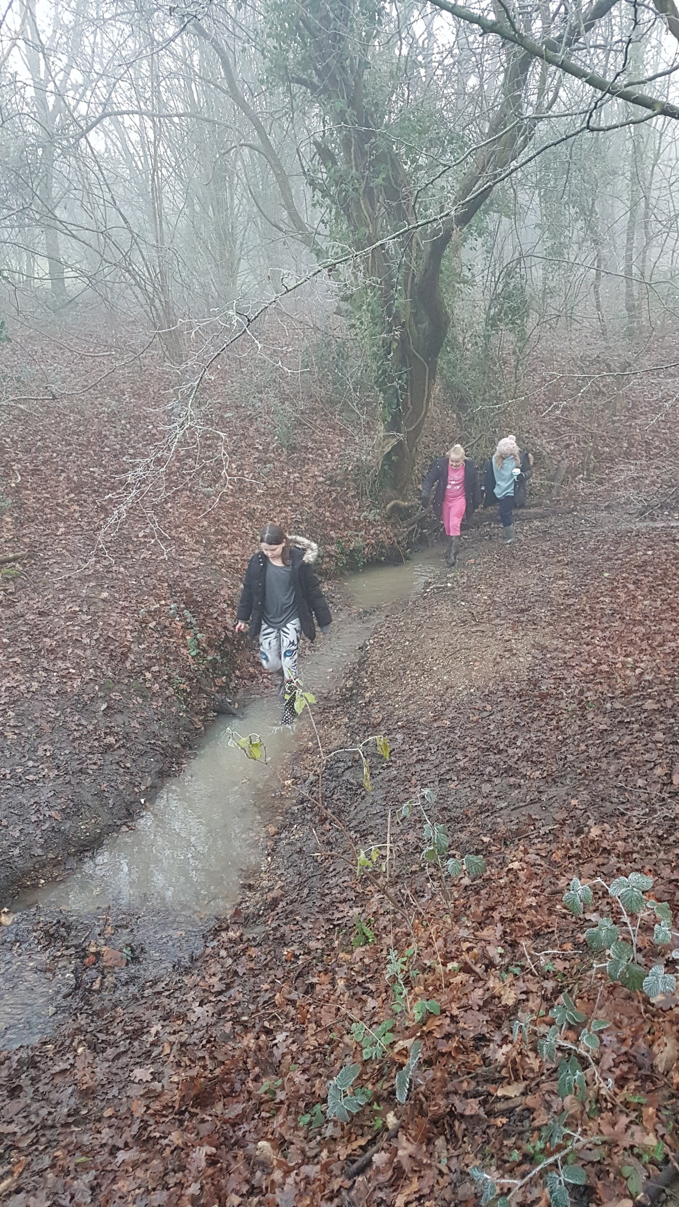 About this time last year. my walking buddy Jill and I decided that the fields were so muddy and we spent so much time shrieking as our trainers got soaked by puddles that we’d just start wearing wellies instead. With the wellies came much more freedom: not just because we could stop picking our way across the swampy, horse-churned paths, of course, but we also found ourselves actively seeking out muddy puddles and splashing through them. We mutter ‘squelch squerch, squelch squerch’ as we squish through the mud – can’t go over it, can’t go under it, got to go through it! We stomp on icy puddles to hear the crack, and this morning we chose to come back through the fields behind the station as we knew it would sound really crunchy as the footprints – both people, dogs and deer – are filled with ice. Who would have thought that such practical footwear could spark such joy?