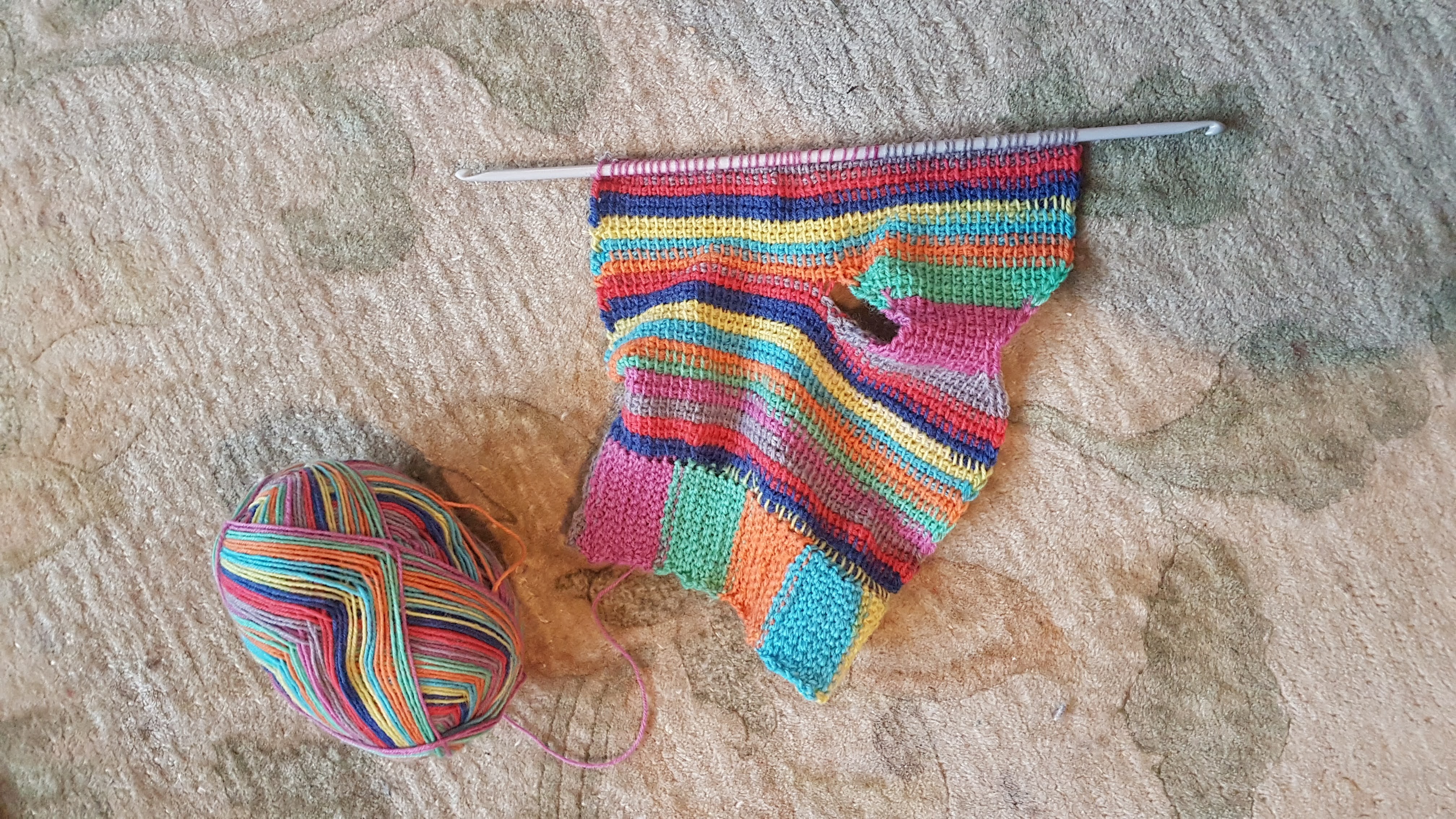 The Tunisian sock is coming on nicely, and is starting to look a bit more socky, which is reassuring! I like this stitch as it’s really easy to count the rows! The fabric has a more knitted look than normal crochet, so these will be stretchier, I hope.