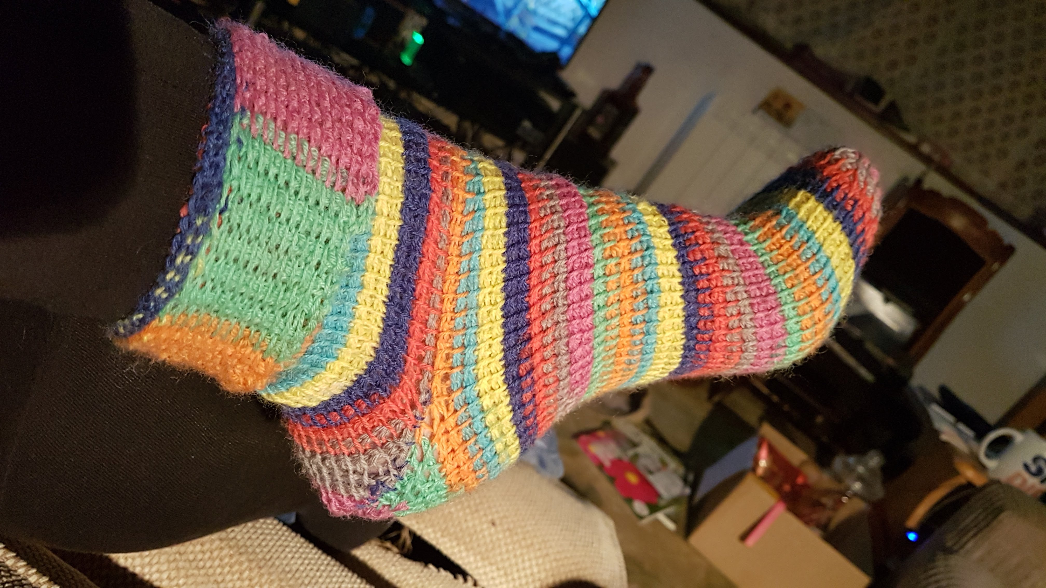 As usual, I got several rounds of my crochet done while I was waiting – I am making these lacy socks from Simply Crochet issue 108, in Marriner Yarns’ Cosy Toes sock yarn. It’s the first time I have used this merino blend yarn and it feels lovely and soft. I’m using the jellyfish colourway which is soft greens and pinks and I am trying to be good and measure the tension so they actually fit.