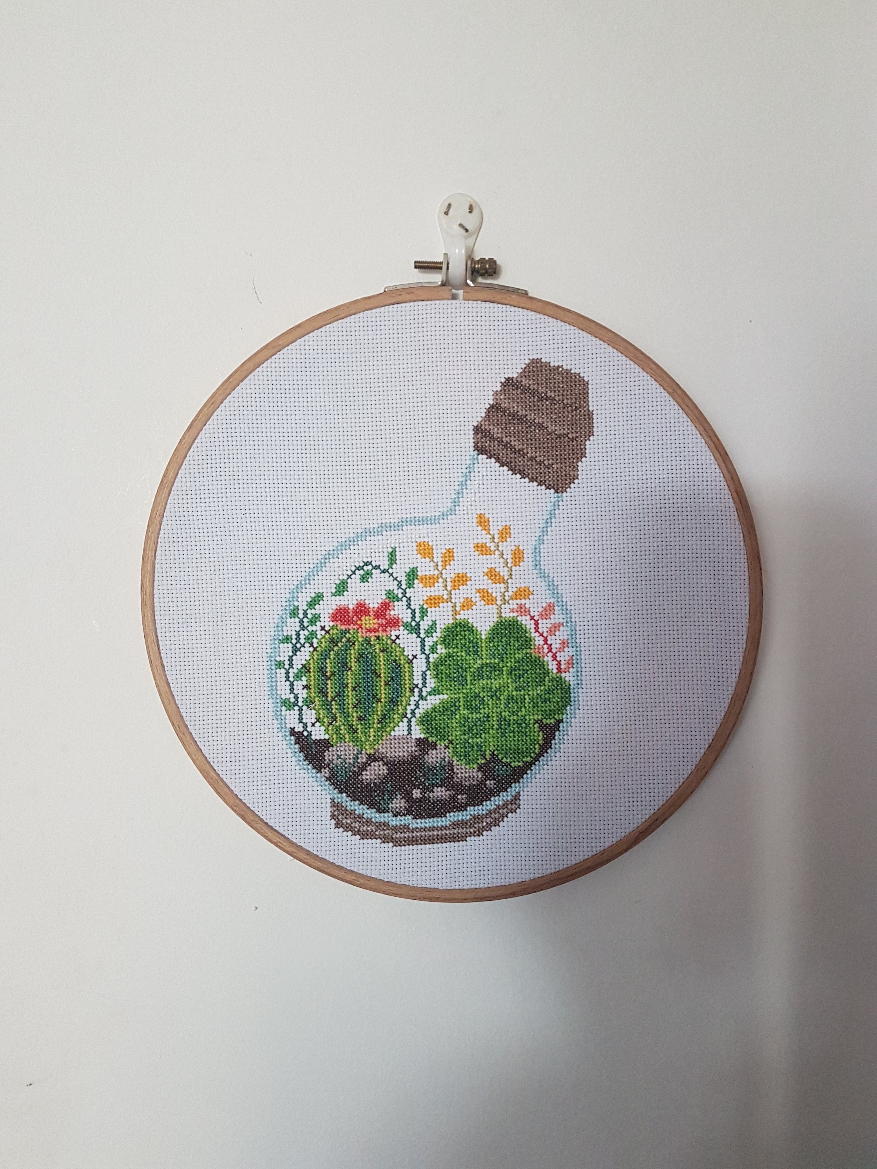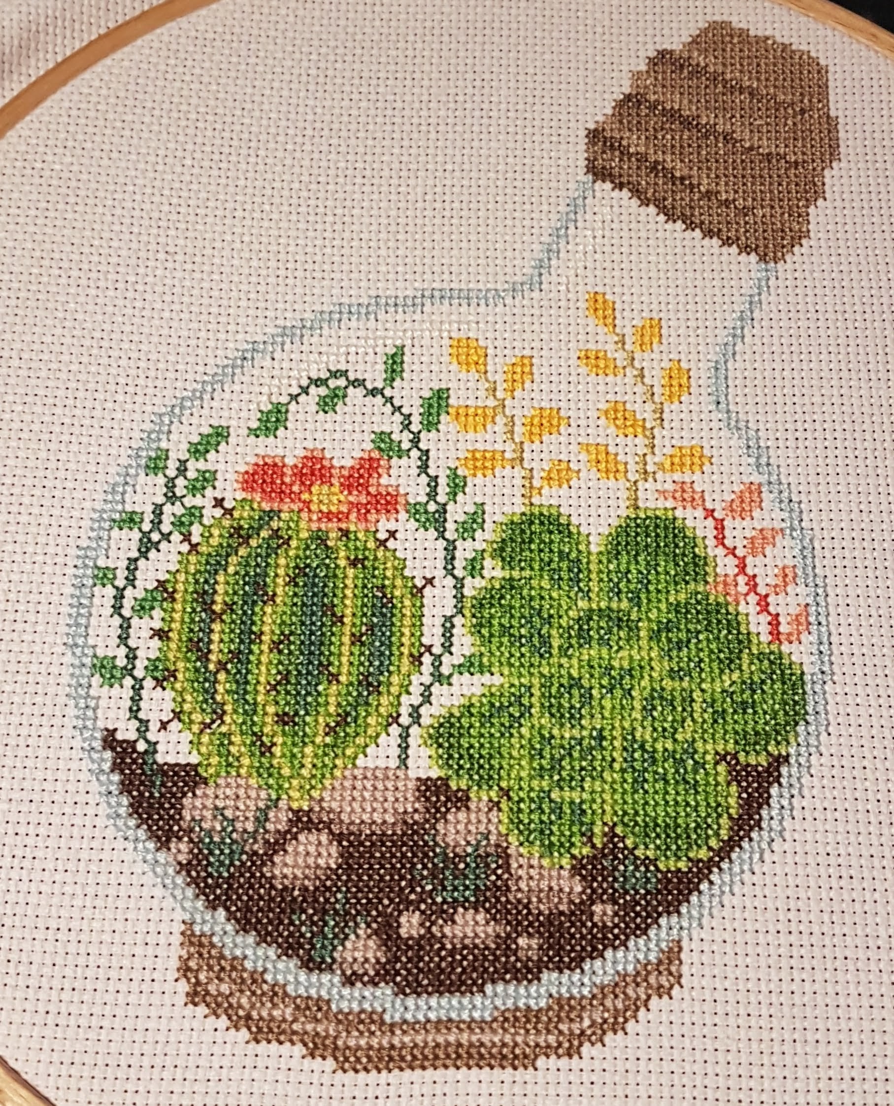 I also finished the succulent terrarium cross stitch, which will be a gift.
