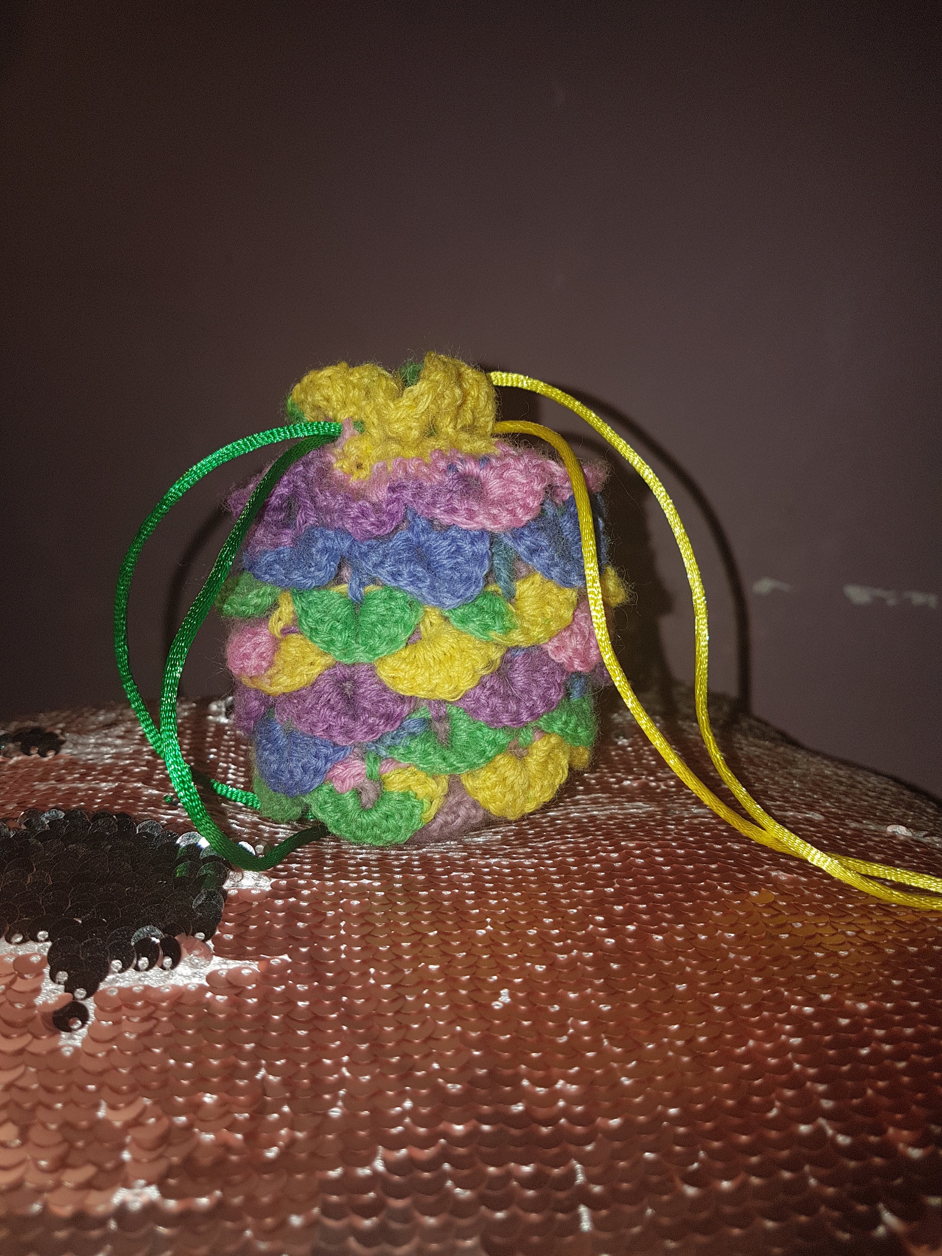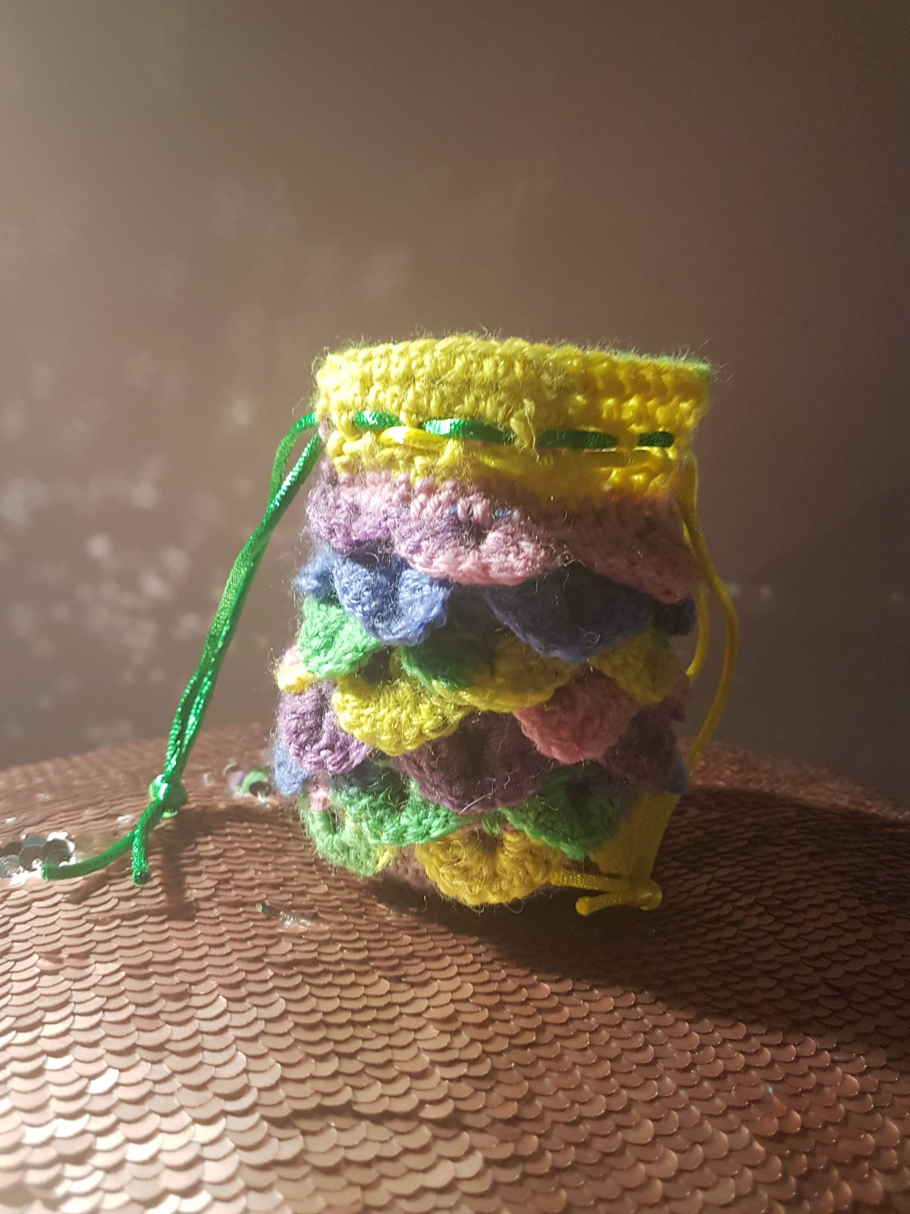 I’ve only been on the tube one day this week, but managed to finish the dragon’s egg dice bag after several attempts to get it the right way up! The pattern is the free Dragon’s Egg lined dice bag by 12SquaredCreations, and is easy to make up as long as you pay attention to the pictures!