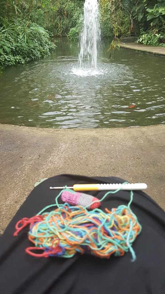 The Things went on strike and demanded a doing-nothing day. No mountains, no walks, no driving, so that was what we did. I started the day with a dip in the sea and later we went back to the beach with the kids. We had ice cream from Caffi Patio and I sat with my crochet while the kids played in the water. Things 2 and 3 built a sand castle while Tan and I went and explored rock pools round the headland at Cilborth.