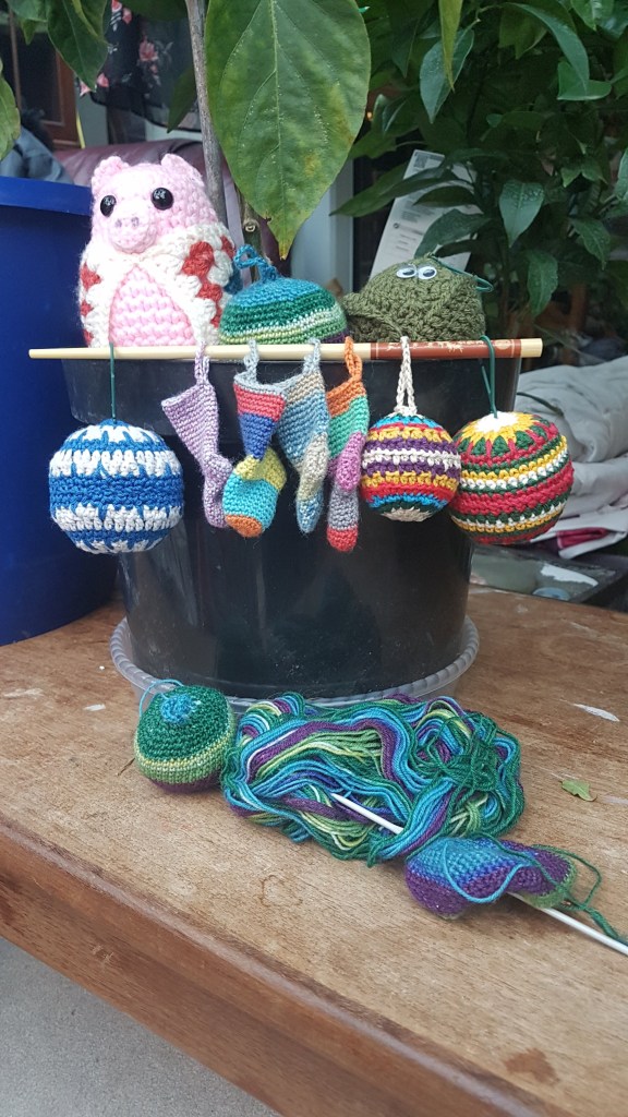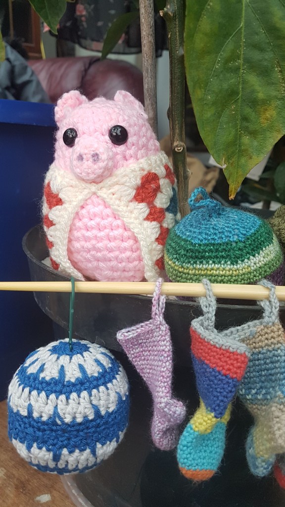 As promised we spent the afternoon on the beach, exploring rock pools, eating yet more ice cream, and finished with a last dip where Tan and Thing 3 were properly wiped out by a wave. I did some beach crochet, sheltered from the wind by the cliff.