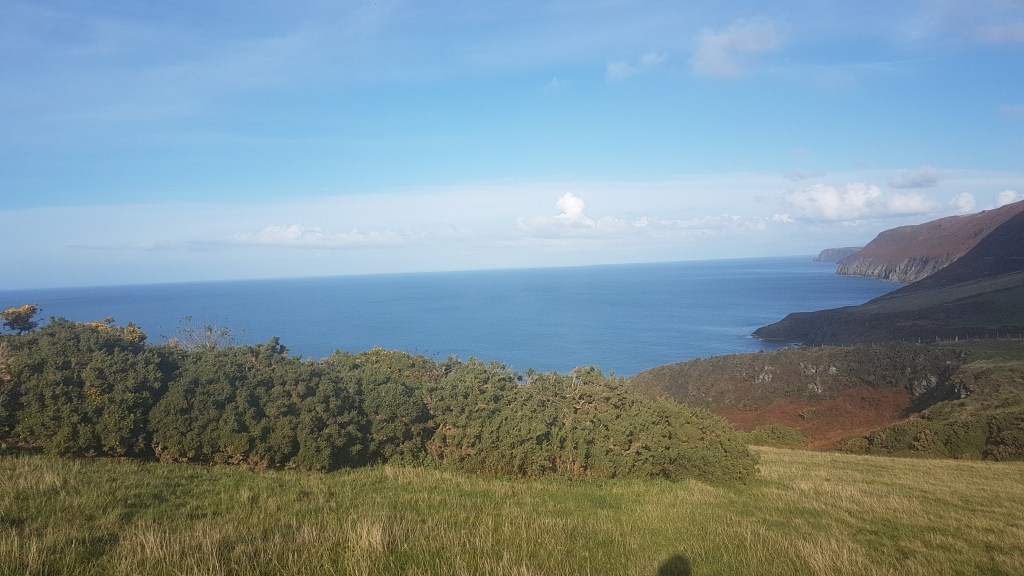 We then headed up through Abergavenny (much to the satnav’s disgust, as it was angling for the M4), through Llandovery and Lampeter and finally arrived in Llangrannog around five. Tan had booked Gerlan, over the road from the beach. The flat was lovely, with views over the beach to the caves – both kids had their own rooms, but after two nights Thing 2 decided my bed was more comfortable. I think she secretly missed her sister. The car had to be parked in the free car park up the hill, as despite advertising two spaces there weren’t any at all. ‘Up the hill’ is an understatement – Llangrannog is in the V of a very steep valley!