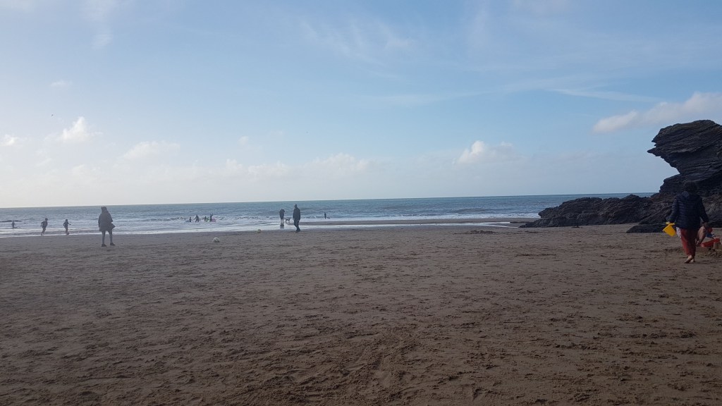Before dinner, Tan and I walked up to the cliff path to watch the sunset with G&Ts which was peaceful and glorious, and was the source for this week’s cover photo. We started binge watching Ghosts again, and just before high tide we dragged the kids outside with their hot chocolates and watched the waves coming up.