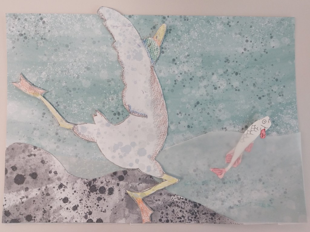 In the afternoon I joined Isabel Benavides at Finsbury Library for a family illustration session as part of the Summer Reading Challenge. Issy has just launched her first picture book, Yogi Duck and the Little Chick, inspired by RSPB Newport Wetlands and utterly charming. It’s the end of the summer holidays and parents are in survival mode, plus the weather was very changeable, so the session was quiet. The people who did attend stayed for almost the whole two hours, and we had some wonderfully fantastical conversations about our crafty creatures in yoga poses.