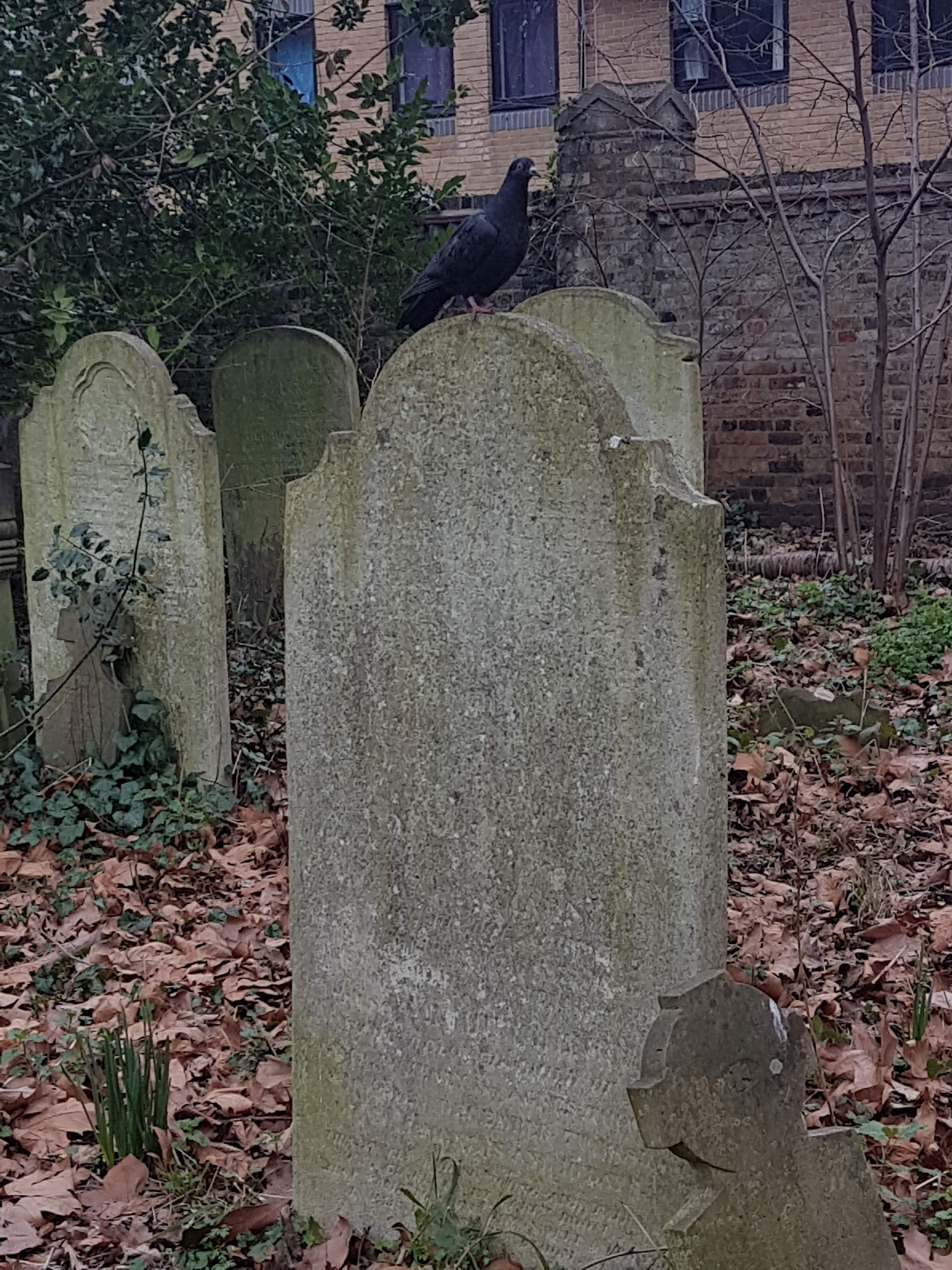 Here it’s more about the nature than about the big names buried in the site, and there are no enormous monuments or mausoleums like those on our previous adventures at Highgate and Kensal Green. We were also not chased by strange men jumping out of a skip, or confronted by a pickled baby. We did have a very good mocha from a tiny coffee TukTuk called the Blue Daisy though. Many of the headstones are tiny, well below knee height, and all the stones are higgledy-piggledy and crammed together as a lot of the park was cleared by the GLC in 1967 after it was closed in 1966.