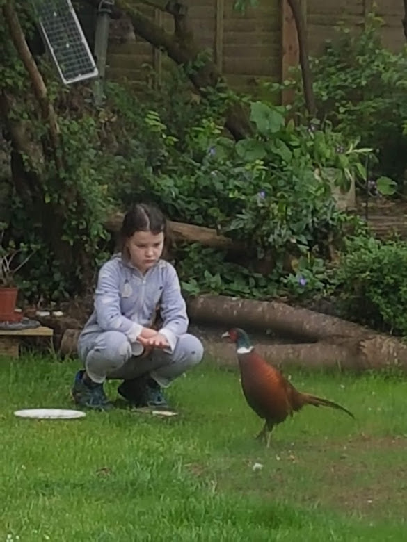 There’s a gang of teen corvids – a couple of jackdaws, a rook and a magpie – who terrorise the neighbourhood feeders and hang out on roofs cawing, and sometimes we get visits from the village peacocks on a wander. I think they have extended their territory into the woods behind the house as they were regularly waking me up at 4am earlier in the summer despite sleeping in Loop earplugs. Colin the pheasant – named by our builders, who reckoned he strutted about like one of their lads – used to be a regular visitor and was tame enough to hand feed monkey nuts to. We haven’t had a pheasant for a while but we have had badger cubs in the garden again this year, and a fox investigating the Blink camera. I like to sit out and work in the garden and listen to the different songs – the BirdNet app is great for identifying all the different species.