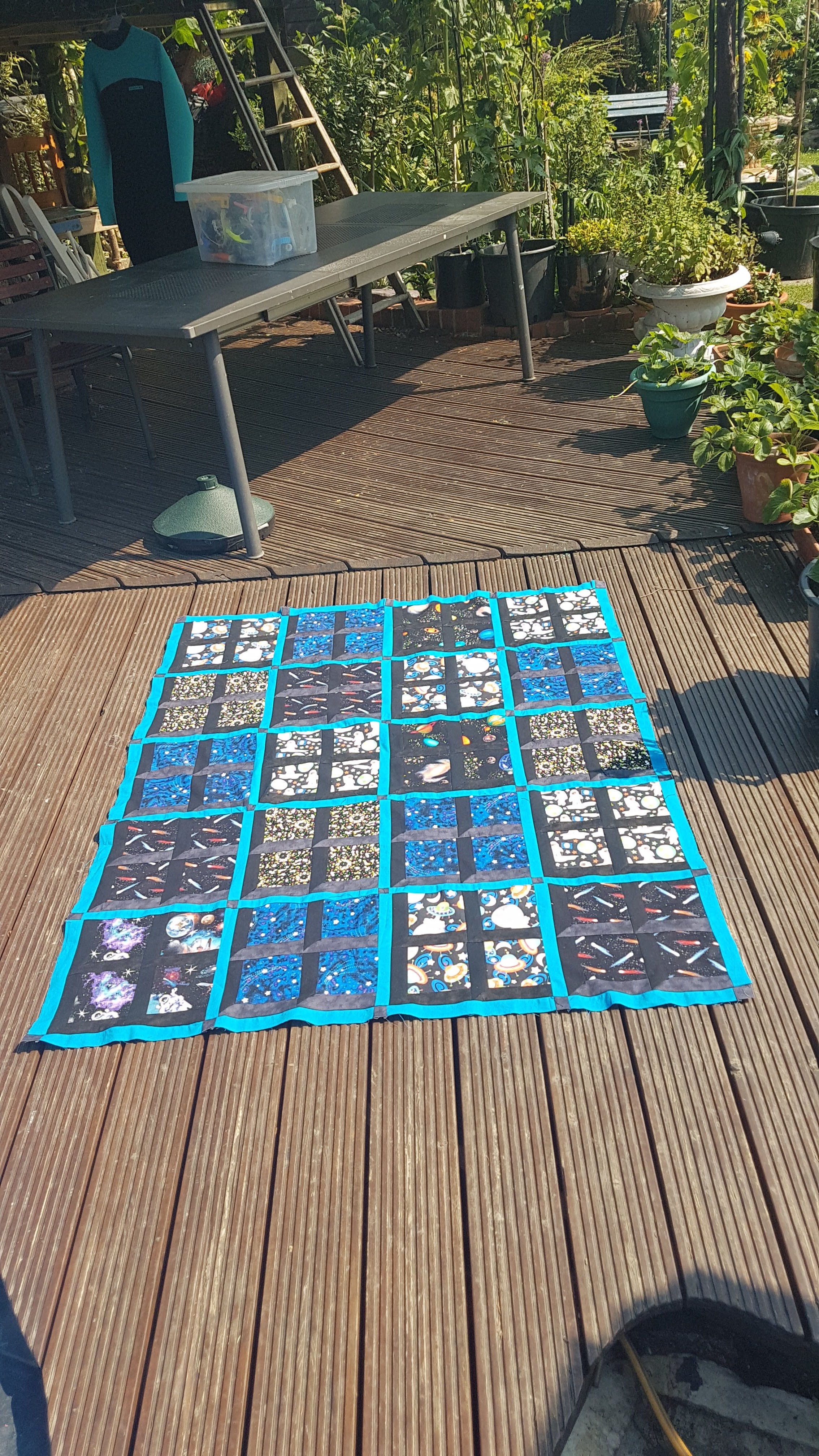 Throughout furlough I have been really enjoying patchwork – starting with the mini charm quilt and the Attic Window quilt that had been in the UFO pile for years, and then working through various charm packs and fat quarters that were lurking in the stash.