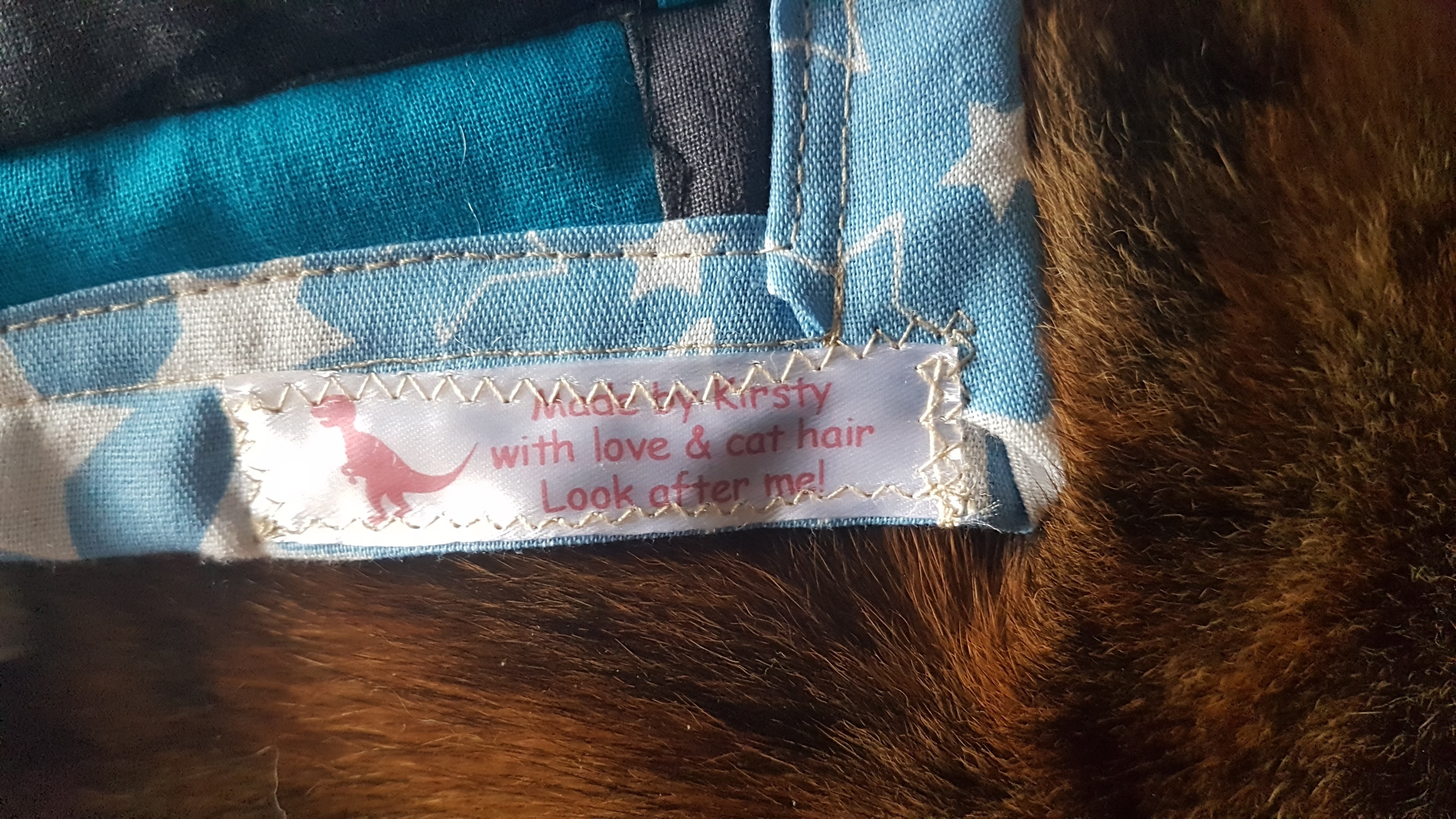 I went with the majority vote and I am soooo pleased with the outcome. It worked well as a stashbuster, which just goes to show what a good investment the book was! As well as the cream print in the triangles I made the bias binding myself from the remnants of the backing fabric from the red quilt from a few weeks ago using this tutorial, and this quilt top is backed with a cot sheet that I had kept from when the kids were little. I used a double layer of batting, as it’s the 2oz one and I wanted a puffier effect, and I quilted in the ditch along the diagonal lines. It’s not a huge quilt, coming out at 33″ x 26″, but it’ll be a good baby gift.