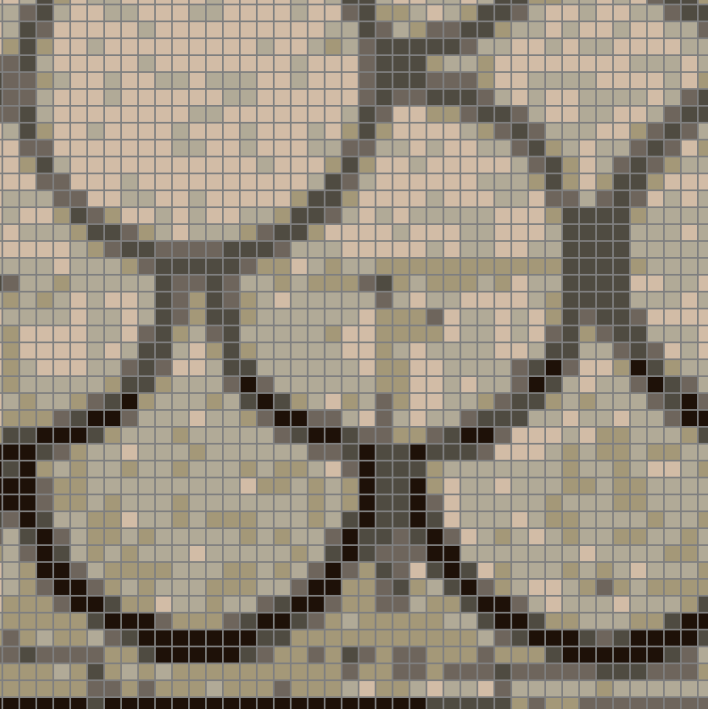 I tried processing the image on the left through another free software application, this time Pic2Pat, so I could see what the blocks would look like on an even grid pattern. This came out like this: