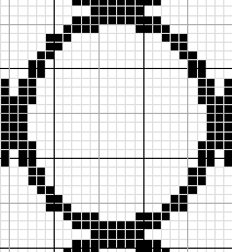 Still not perfect, but much easier to work from! I was able to create a basic circle from this which I then turned into a repeating pattern using StitchFiddle. I haven’t found copy and paste functionality as yet, but for things like this it would be really handy. There is a mirror horizontally or vertically function, but you lose the original and are left with the reflected one only. I did use it later, when I was having problems repeating the fishscale pattern to the left – I flipped it and then carried on working to the right.